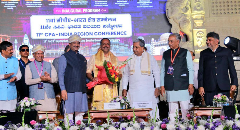 ವಿಧಾನಸೌಧದ ಮುಂಭಾಗ ಆಯೋಜಿಸಿದ್ದ 11ನೇ ಕಾಮನ್‌ ವೆಲ್ತ್‌ ಸಂಸದೀಯ ಸಂಘದ ಭಾರತ ವಿಭಾಗದ ಸಮ್ಮೇಳನದಲ್ಲಿ ಮಾನ್ಯ ಮುಖ್ಯಮಂತ್ರಿಗಳಾದ ಸಿದ್ಧರಾಮಯ್ಯ ಅವರು  ಪಾಲ್ಗೊಂಡರು ಬಳಿಕ ಮಾತನಾಡಿ ಇಡೀ ದೇಶ ಪ್ರಜಾಪ್ರಭುತ್ವ ಹಾಗೂ ಸಂವಿಧಾನದ ಆಶಯಗಳಡಿ ಮುನ್ನಡೆಯುವಂತೆ ಕರೆ ನೀಡಿದರು. ಇದನ್ನೂ ಓದಿ :  ಸಿಎಂ ನಿವಾಸದ ಮುಂದೆ ಹೊತ್ತಿ ಉರಿದ ಕಾರು – ಕೂದಲೆಳೆ ಅಂತರದಲ್ಲಿ ಚಾಲಕ ಪಾರು