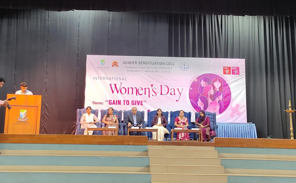ಮಂಗಳೂರು: ಯೆನೆಪೊಯ ( ಪರಿಗಣಿಸಲ್ಪಟ್ಟ ವಿಶ್ವವಿದ್ಯಾಲಯ), ದೇರಳಕಟ್ಟೆ, ಮಂಗಳೂರಿನಲ್ಲಿಅಂತರರಾಷ್ಟ್ರೀಯ ಮಹಿಳಾ ದಿನಾಚರಣೆಯನ್ನು ಮಾರ್ಚ್ 9, 2026 ರಂದು ಯೆಂಡ್ಯೂರನ್ಸ್ ಸಭಾಂಗಣದಲ್ಲಿ ಜೆಂಡರ್ ಸೆನ್ಸಿಟೈಸೇಶನ್ ಸೆಲ್(ಲಿಂಗ ಸಂವೇದನಾ ಘಟಕ) ವತಿಯಿಂದ ಆಚರಿಸಲಾಯಿತು. ಈ ವರ್ಷದ ವಿಷಯ“ಗಿವ್ ಟು ಗೇನ್ (ಸಹಕಾರದಿಂದ ಅಭಿವೃದ್ಧಿ)” ಆಗಿತ್ತು.